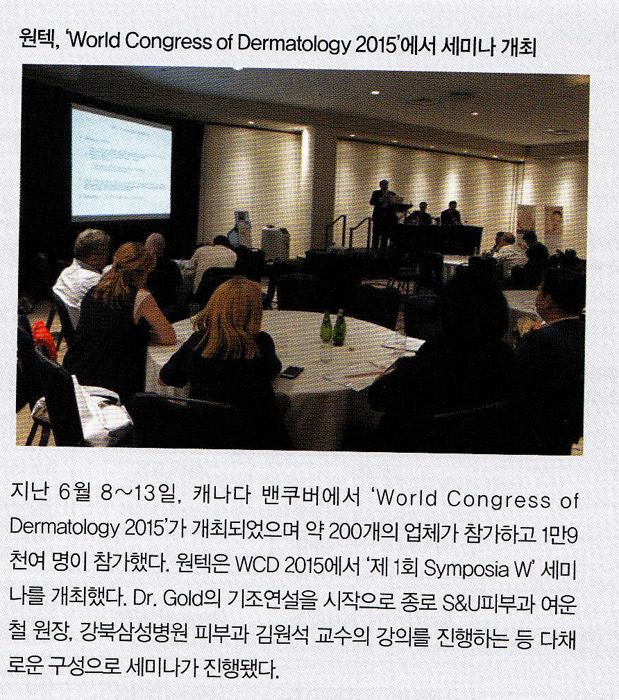 | 281 | 특별회원사인 원텍'world congress of dermatology 2015' 세미나개최 |
