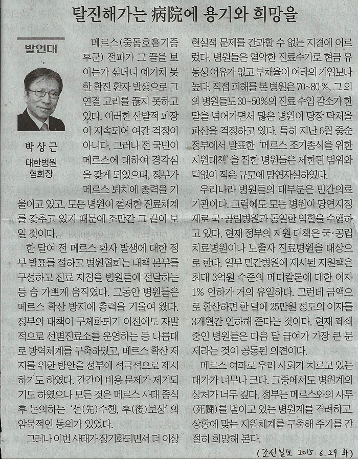 | 277 | 박상근 명예회장님 조선일보컬럼,"탈진해가는 病院에 용기와 희망을" |