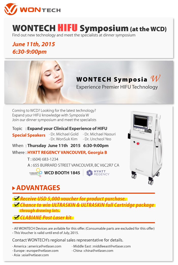 | 275 | 특별회원사인 원텍에서 세계피부과학회에 거대하게 부스도 설치하고 HIFU 에 관한 발표도 있습니다 |