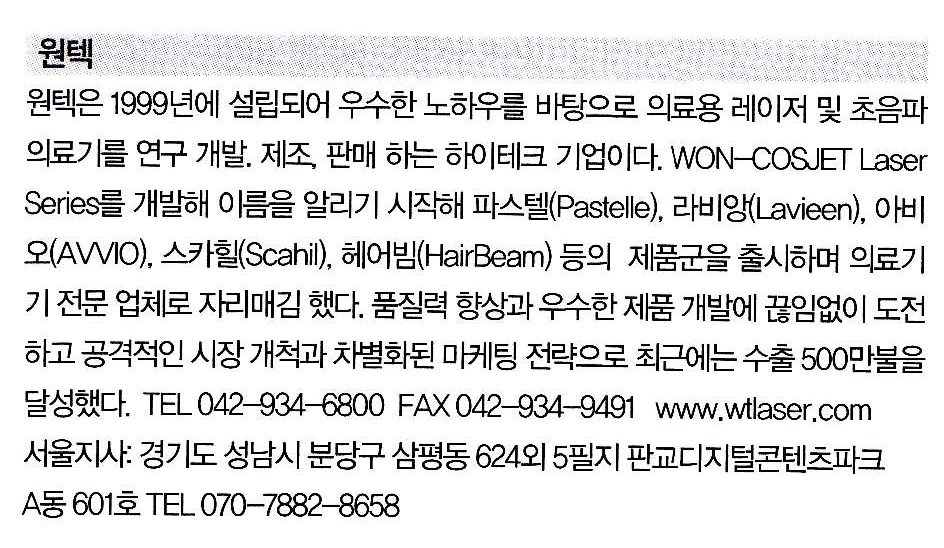 | 271 | 대한의학레이저학회 특별회원사 원텍업계동향 |