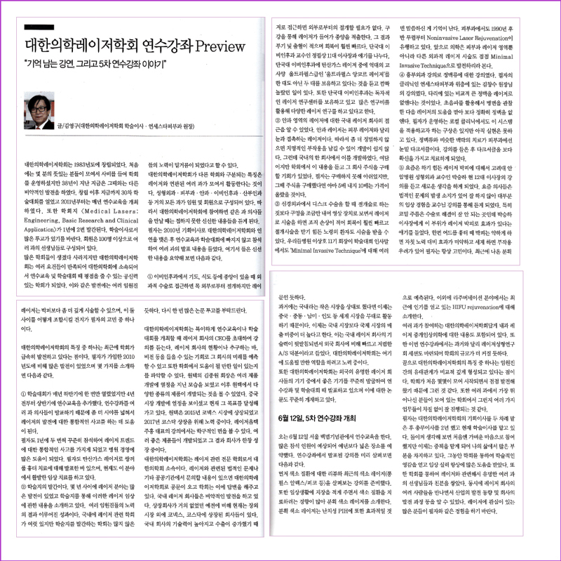 | 336 | 대한의학레이저학회 김영구학술이사,"기억에 남는 강연 그리고.." |