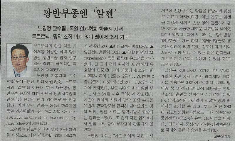 | 321 | 특별회원인 루트로닉사의 황반부종엔 "알젠" |