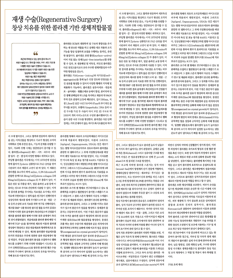 | 315 | 홍보이사 박은수 교수님,"창상치유를 위한 콜라겐 기반 생체적합물질" |