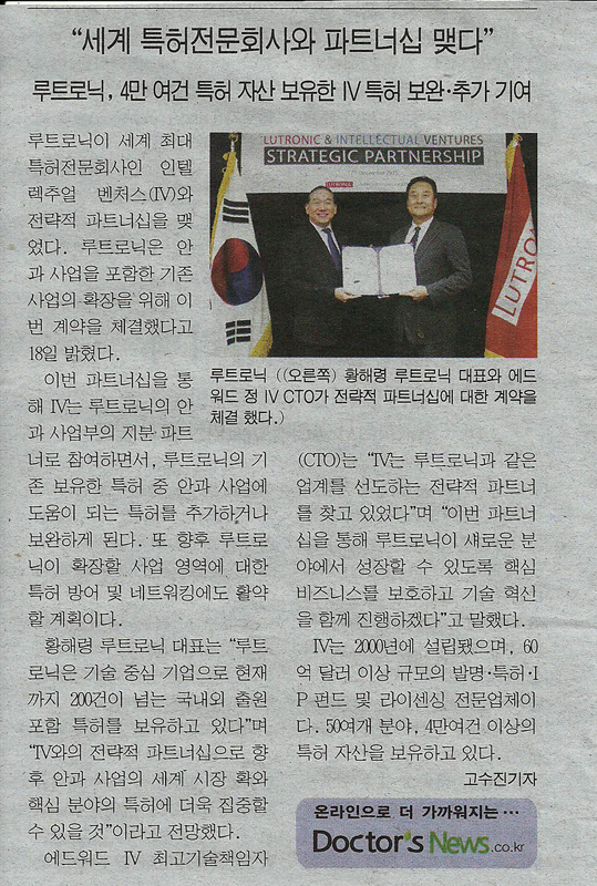 | 313 | 특별회원사인 "루트로닉" "세계 특허전문회사와 파트너쉽 맺다" |