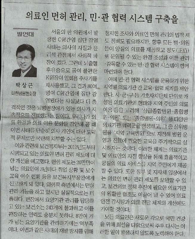 | 307 | 박상근명예회장님 "의료인 면허 관리, 민·관 협력 시스템 구축을" |