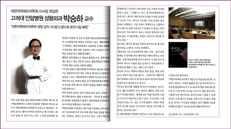 | 302 | 대한의학레이저학회 박승하 이사장님 "영문잡지,SCI급 논문으로 발전시킬 예정" |